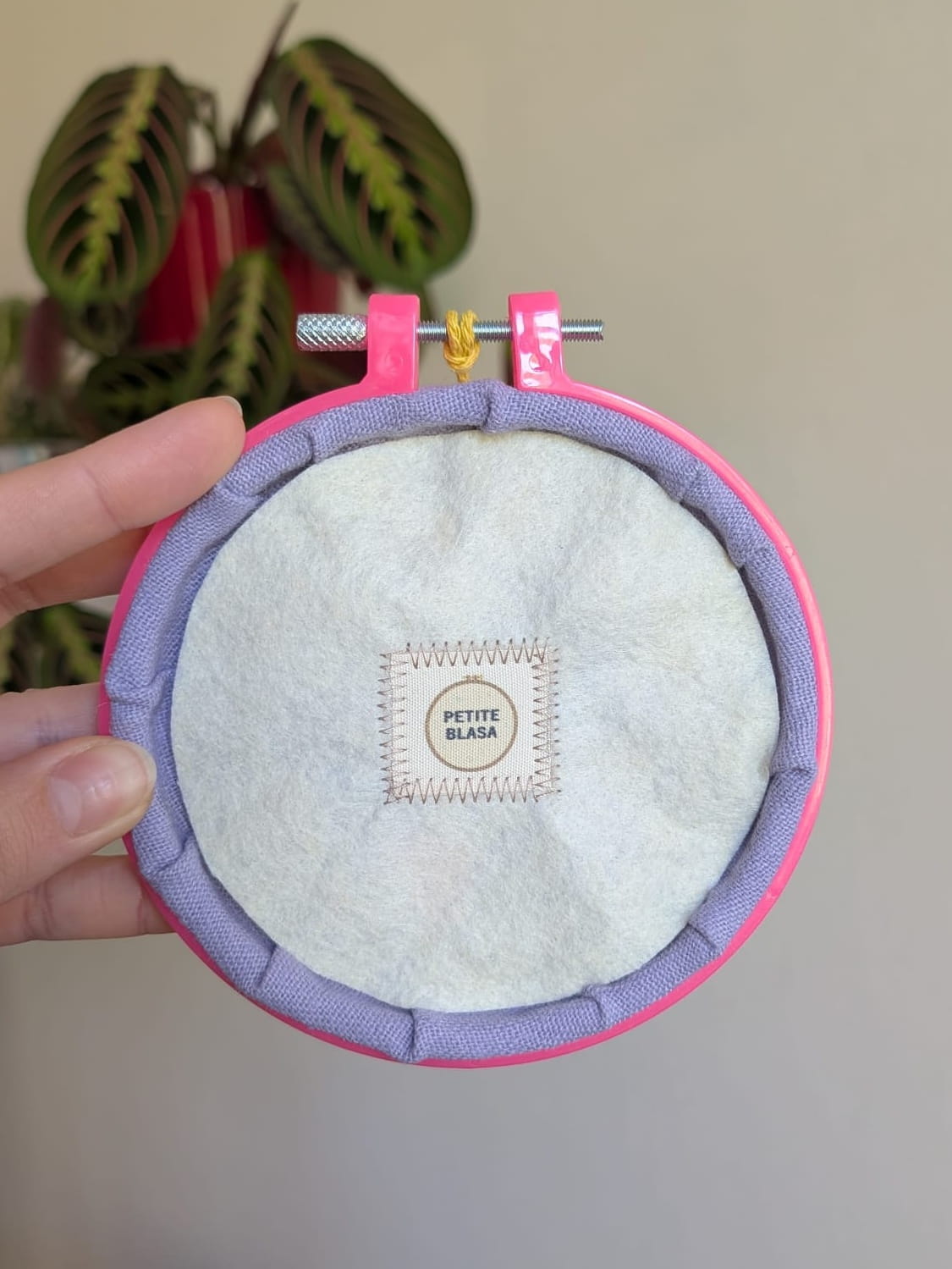 Está rematado en la parte trasera con una pieza de fieltro, para esconder los nudos y demás imperfecciones del bordado. Lleva una etiqueta de Petite Blasa, para que sepas que es auténtico.