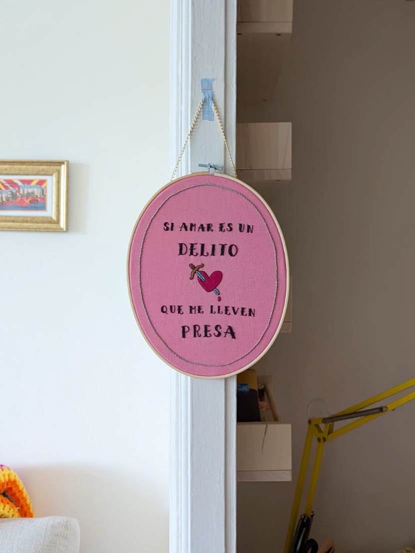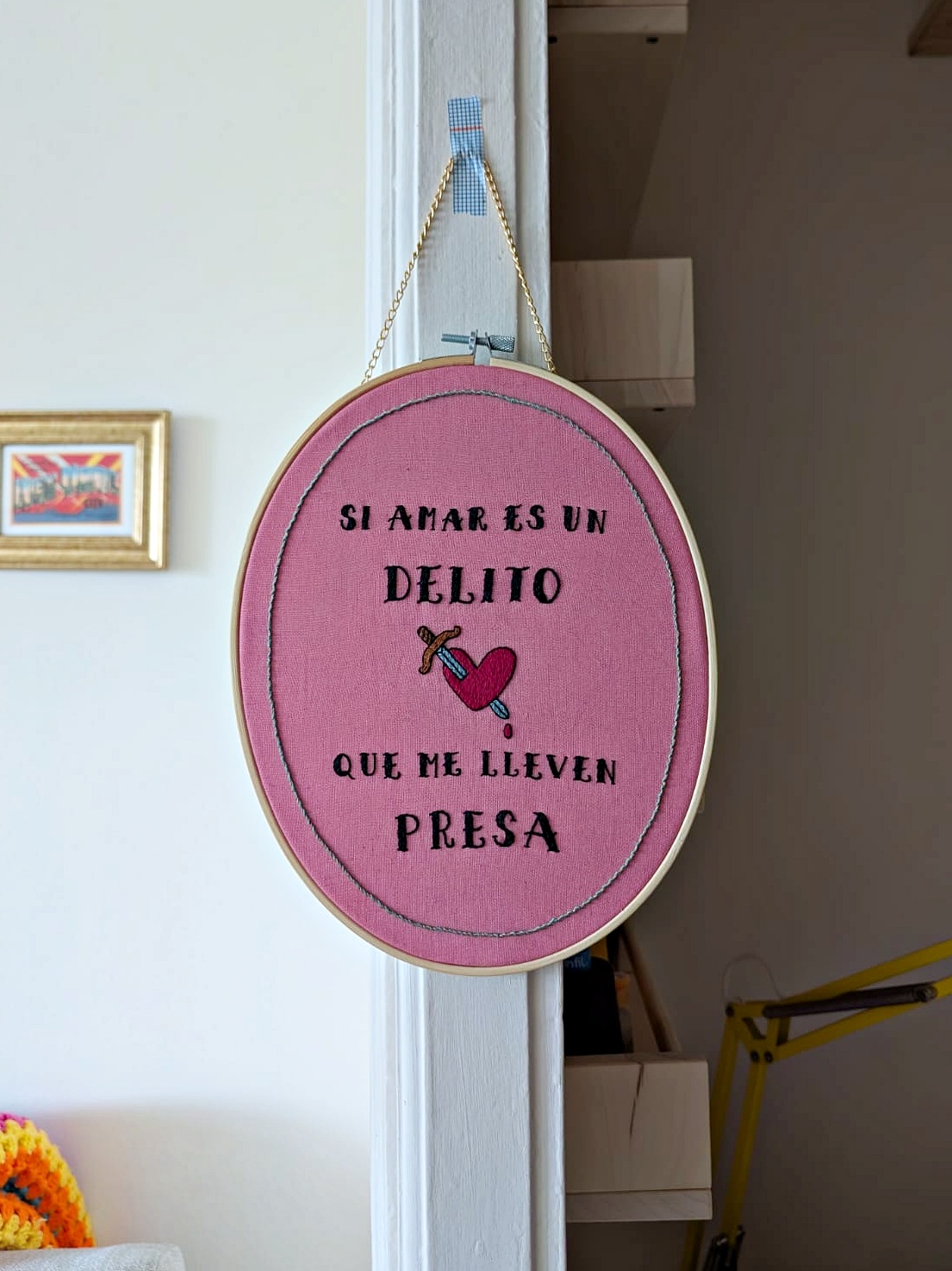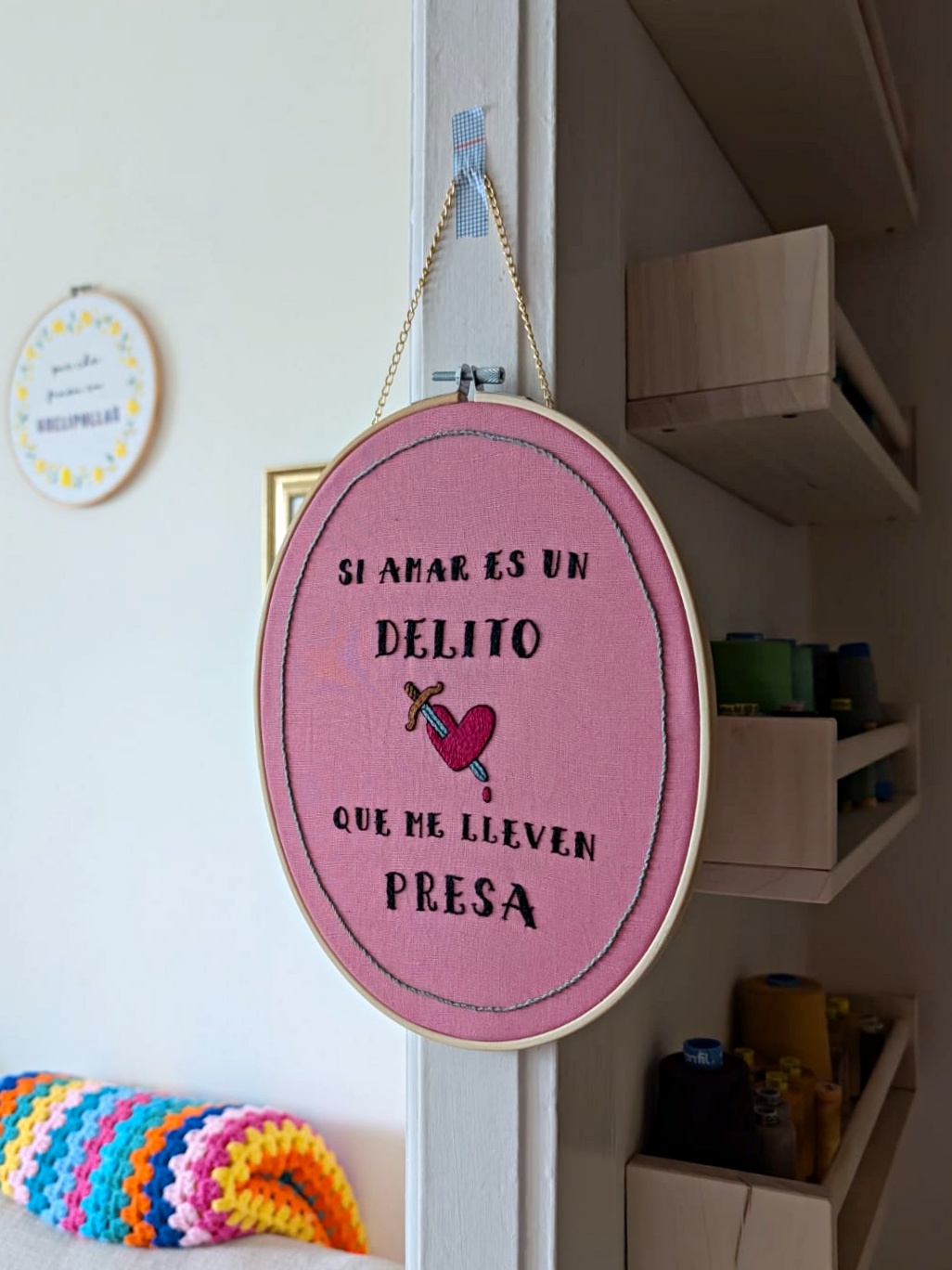 Katarina es un bastidor con rollazo. Está totalmente bordado a mano y además suelo dejarme llevar a la hora de crear los diseños, de modo que no hay dos iguales.